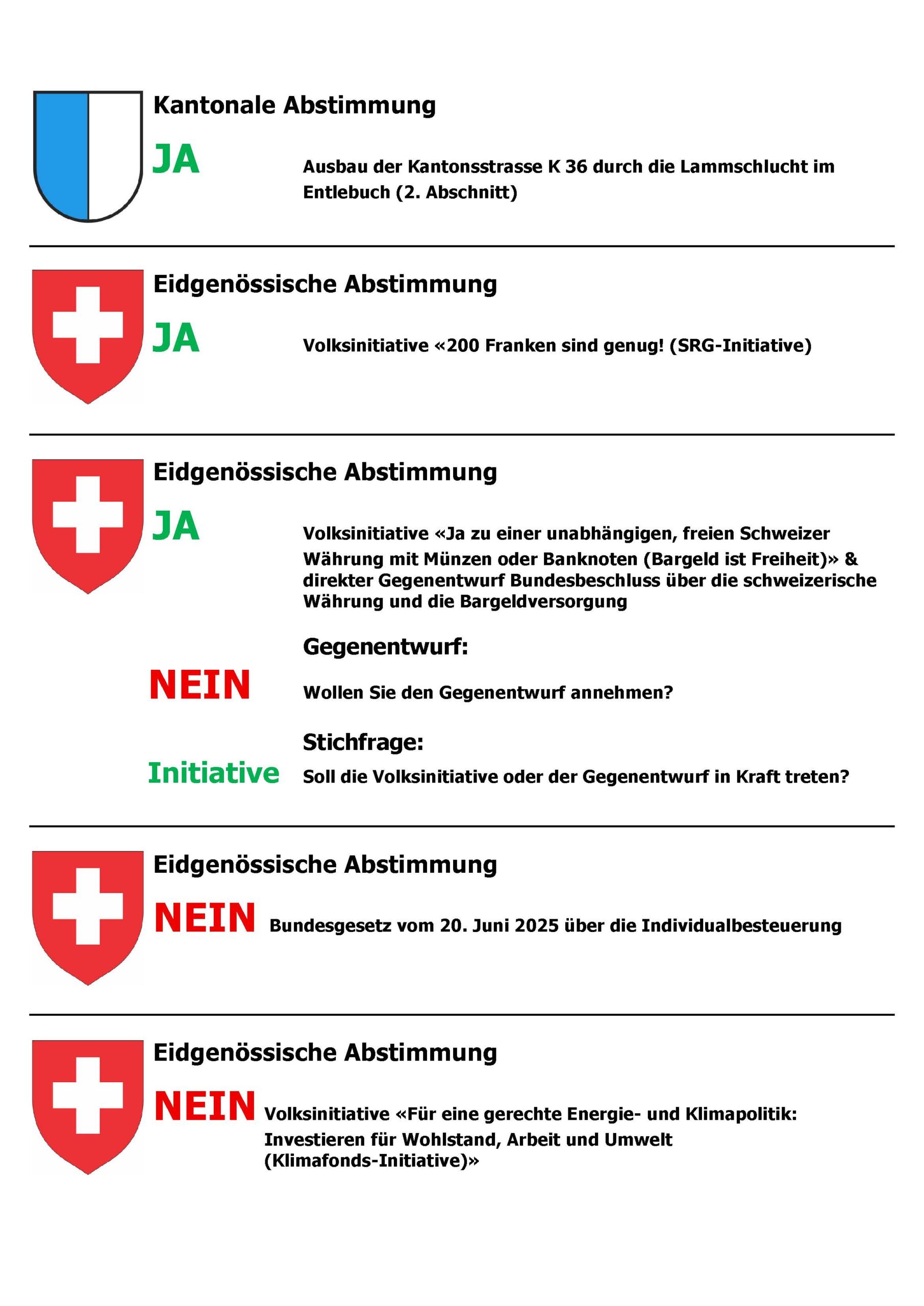 Die SVP zum Abstimmungssonntag